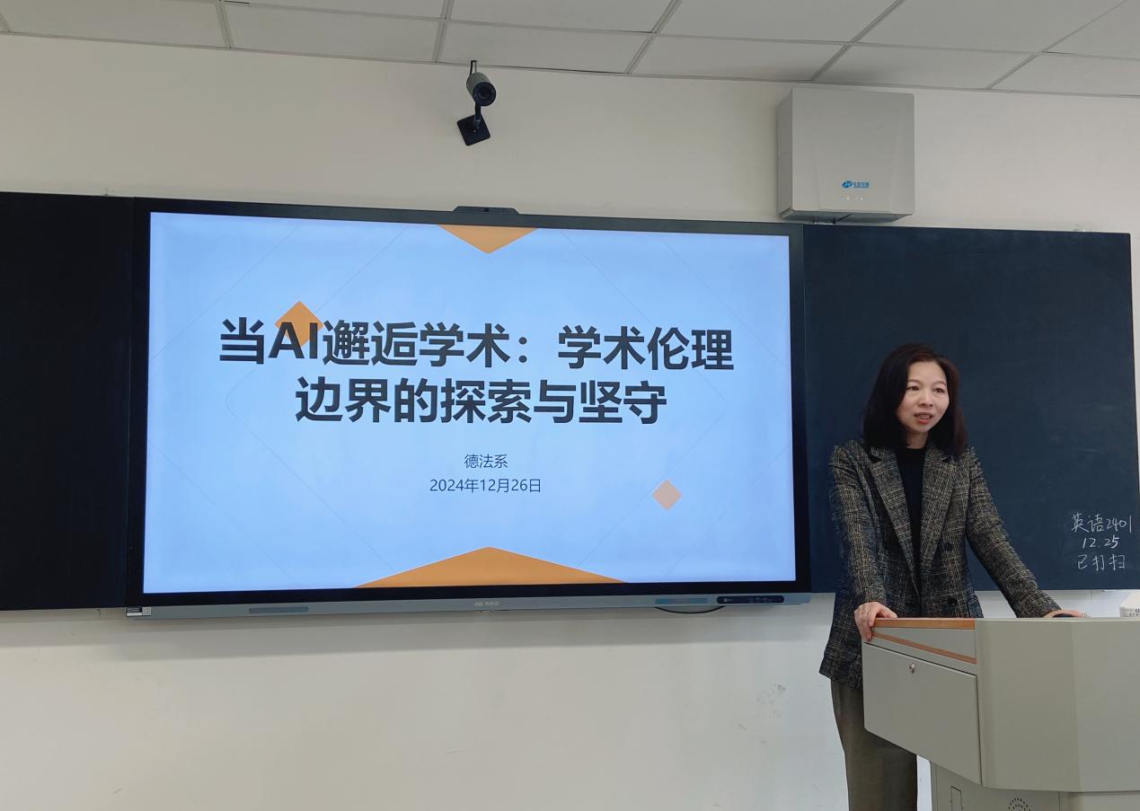 12月12日,外国语学院德法系举办了一场以“当AI邂逅学术:学术伦理边界的探索与坚守”为主题的研讨会。本次研讨会由德法系主任周昳旸老师主持,专业负责人潘艳博士和全体教师共同参与,旨在探讨人工智能技术对学生毕业论文的影响及应对策略。