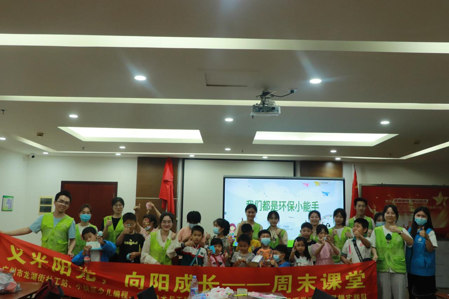 为增强小朋友们环保与责任意识,提高小朋友动手实践能力,外国语学院阳光展翅实践队于4月15日上午9:00在龙湖街道开展第三期“向阳学堂”志愿服务活动。