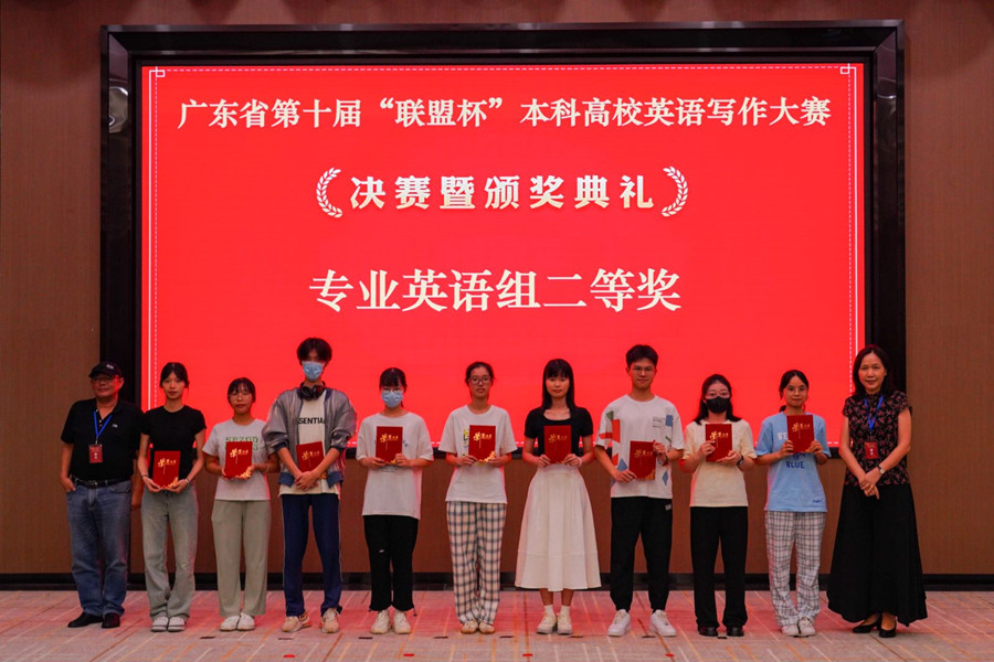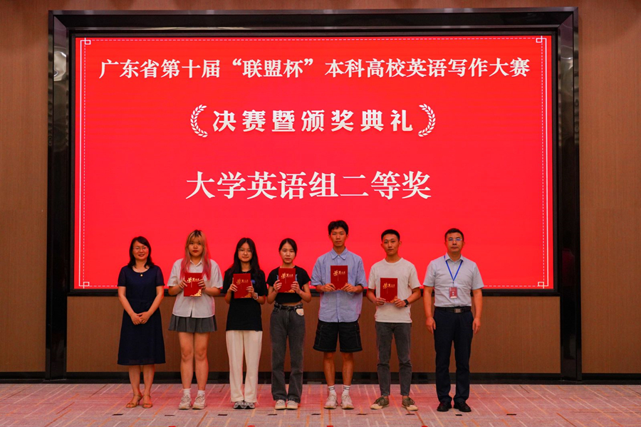 6月11日上午9时,广东省第十届“联盟杯”本科高校英语写作大赛决赛暨颁奖典礼在广州工商学院成功举行,外国语学院潘文晗和杨家华老师带领我校3位学子参加了本次赛事,其中外国语学院学生练宝靖获得英语专业组二等奖,会计学院学生周若琳获得大学英语组二等奖,信息技术与工程学院学生林奕全获得大学英语组三等奖,张蕾、张丽、杨家华三位老师荣获“优秀指导老师”称号。