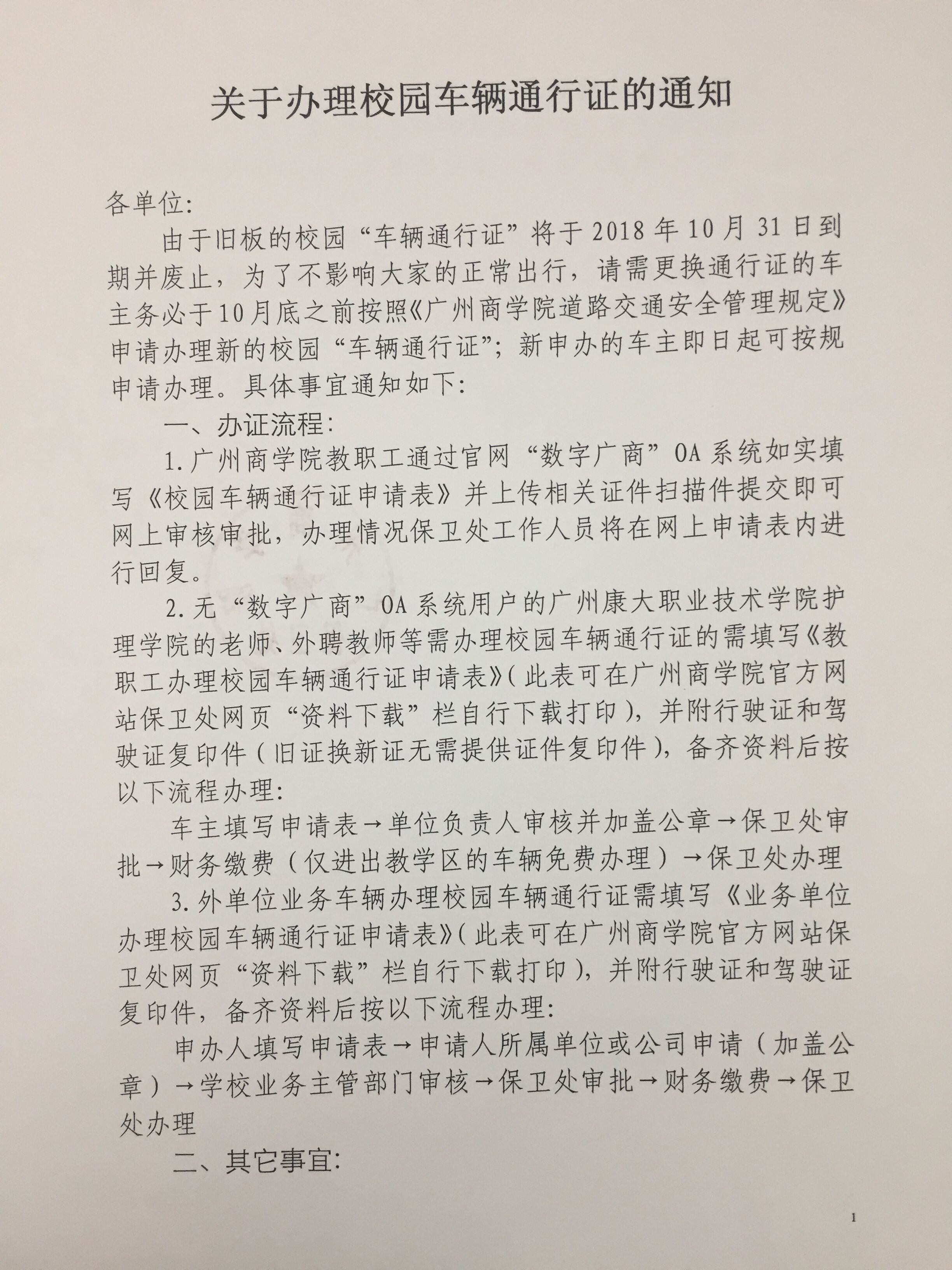 关于办理校园车辆通行证的通知