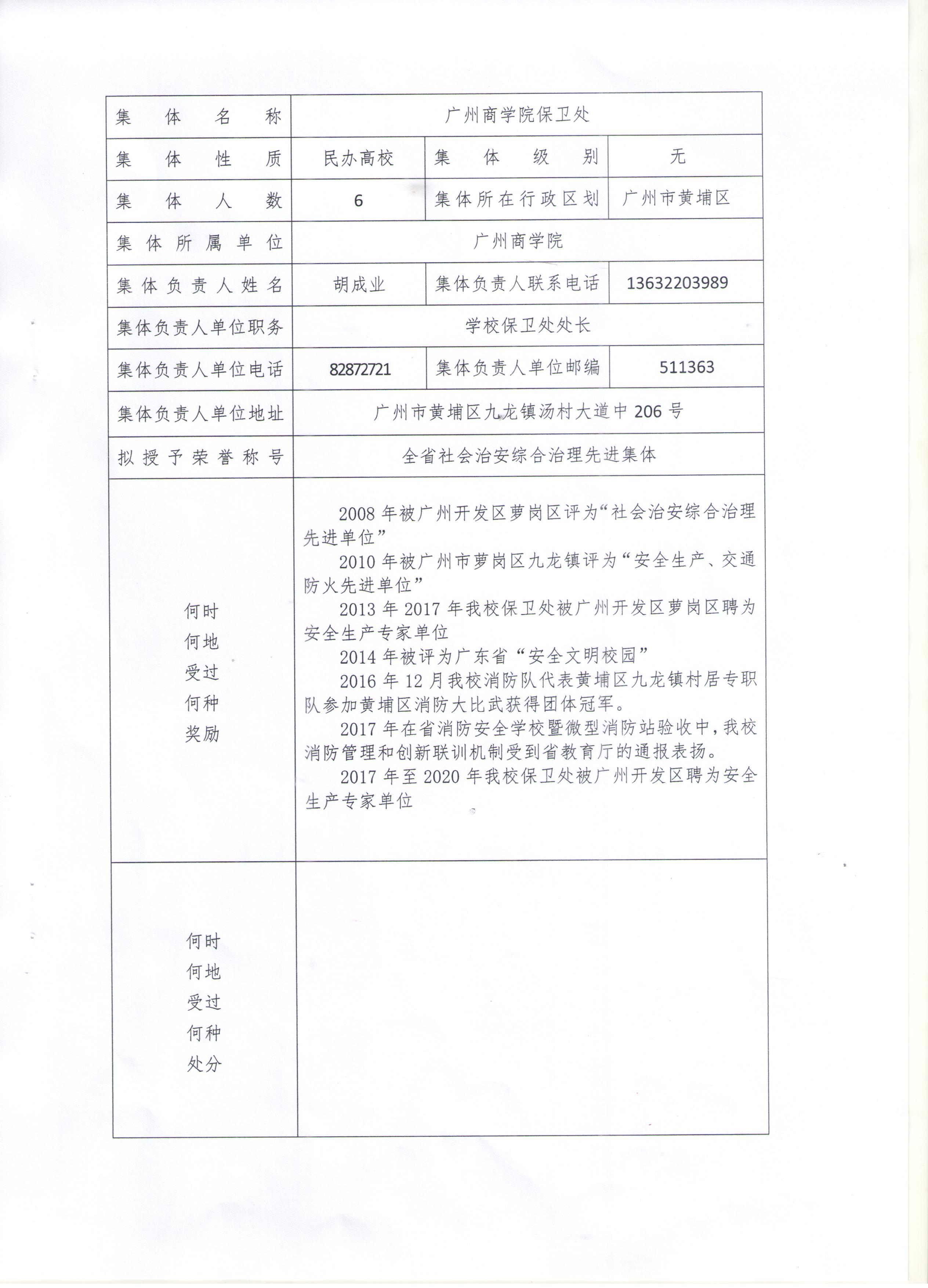 关于推荐保卫处参评省社会治安综合治理先进集体的公示